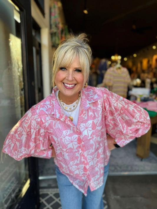 Astrid Pink Toile Woven Top 21-31921I