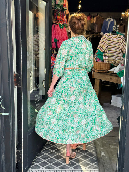 Uncle Frank Green Midi Tiered Dress 74658
