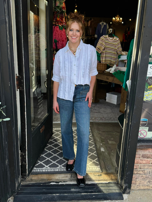 Ivy Jane White Tuxedo Gauze Shirt 641496