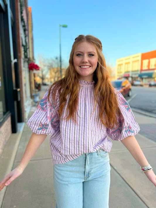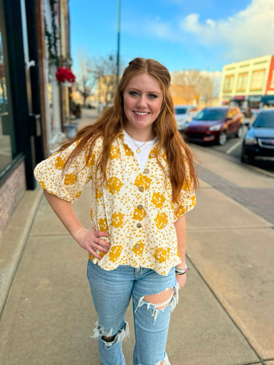 Charlie B Sky Long Sleeve Shirt with Button and Knot