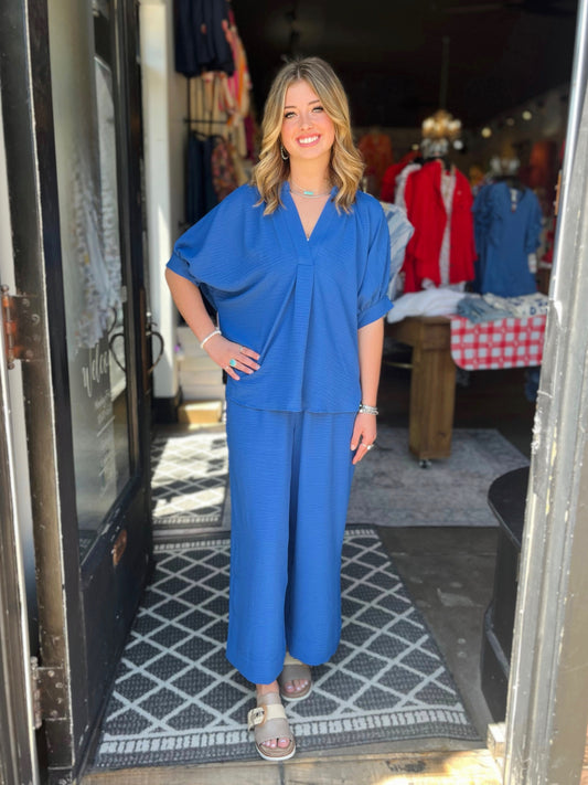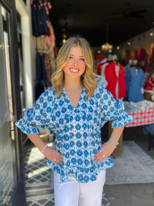 Ivy Jane Blue Ikatching Peplum Top