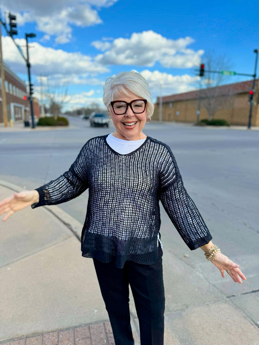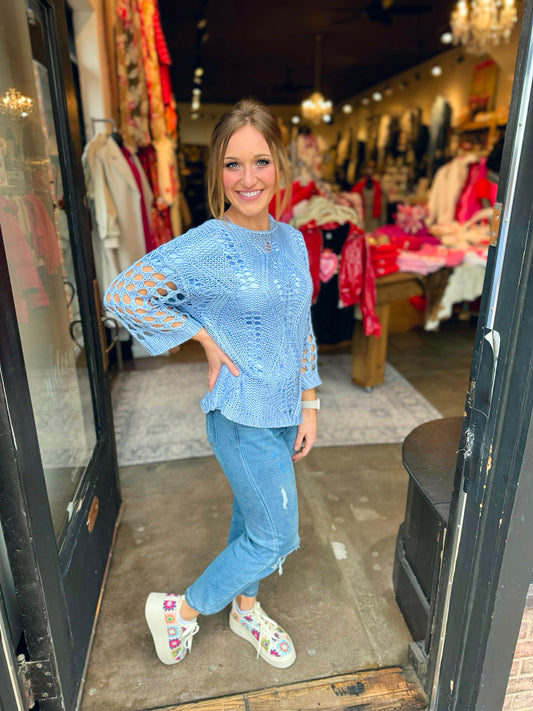 Charlie B Sky Crochet Dolman Boat Neck Sweater