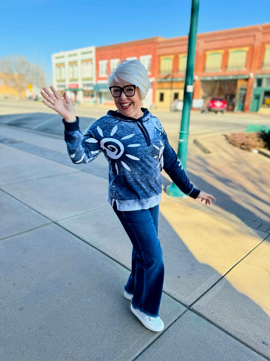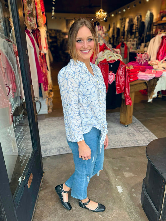 Charlie B Sky Long Sleeve Shirt with Button and Knot