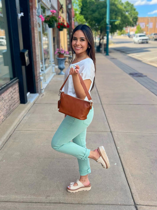 Charlie B White Drop Shoulder 3/4 Roll Up Sleeves Shirt