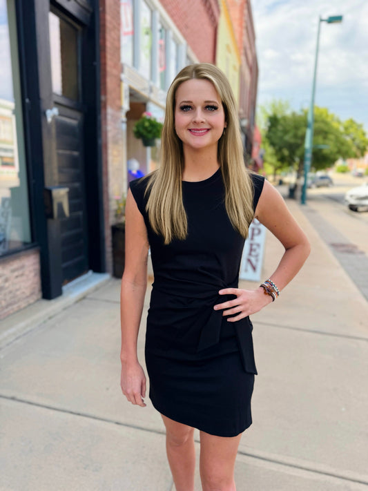 Sold outKld Black Cap Sleeve Side Tie Dress