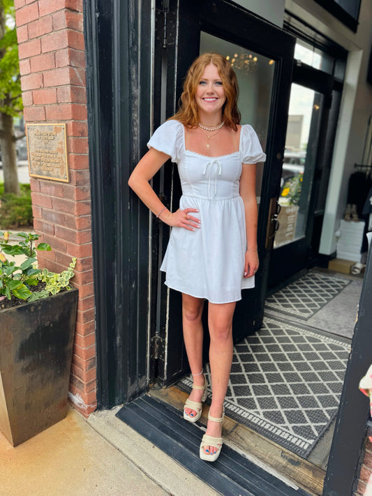 White Princess Puff Sleeve Lace Trim Dress