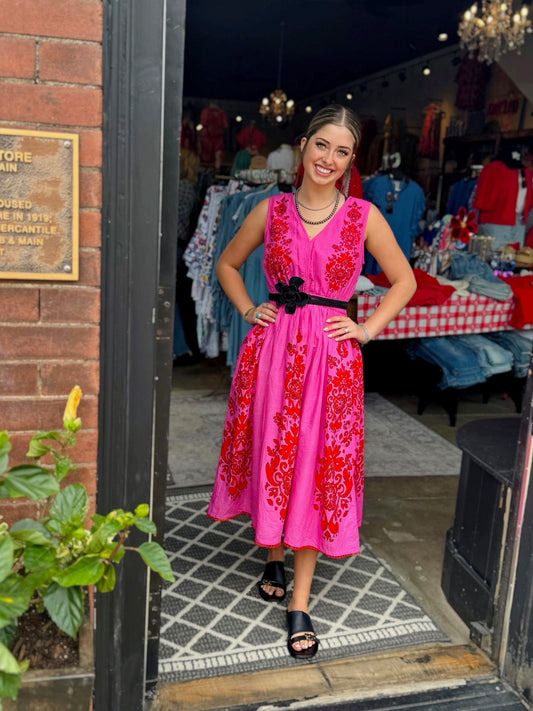 Uncle Frank Periwinkle Mock Kantha Stitched Floral Dress
