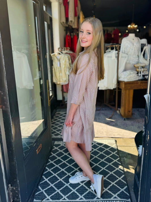 Joh Khaki Jaelynn Cotton Stripe Dress
