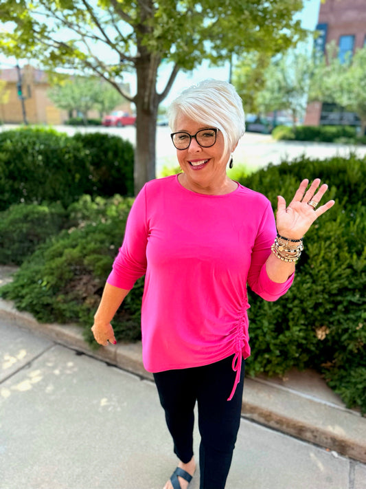 Multiples Deep Fushia 3/4 Slv Scoop Nk Side Frt Drawstring Tie