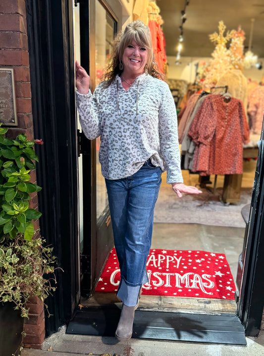 Multiples Truffle L/S Drawstring Collar Hi-Lo Top
