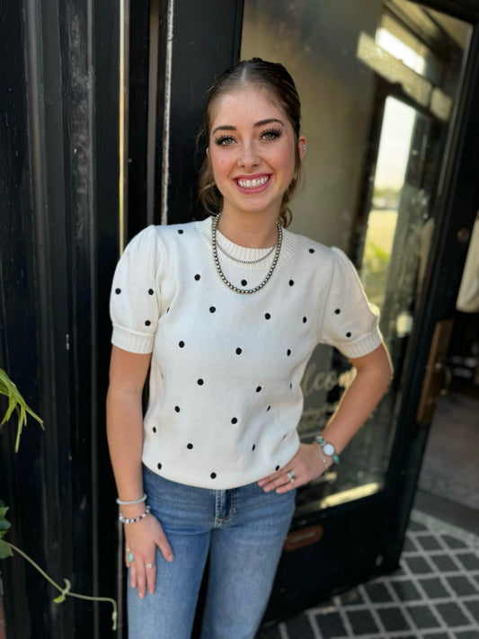 KLd White Puffed S Polka Dot Sweater 45308