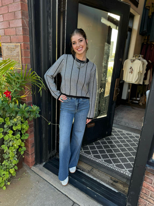 Astrid Black/White Combo Knit Sweater
