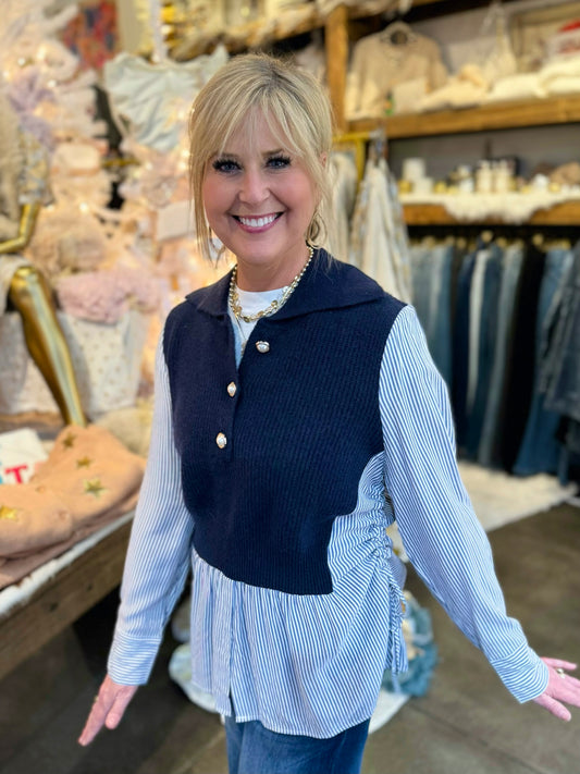 Trisha Tyler Black Rib Detail Pullover Long Sweater
