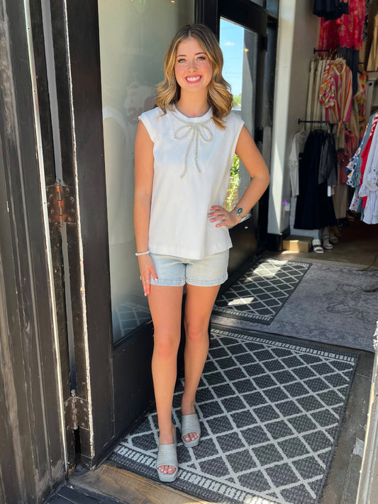 Endless Rose White Rhinestone Bow Sleeveless Top