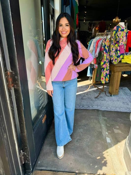 Tribal Orchid Crew Stripe Sweater