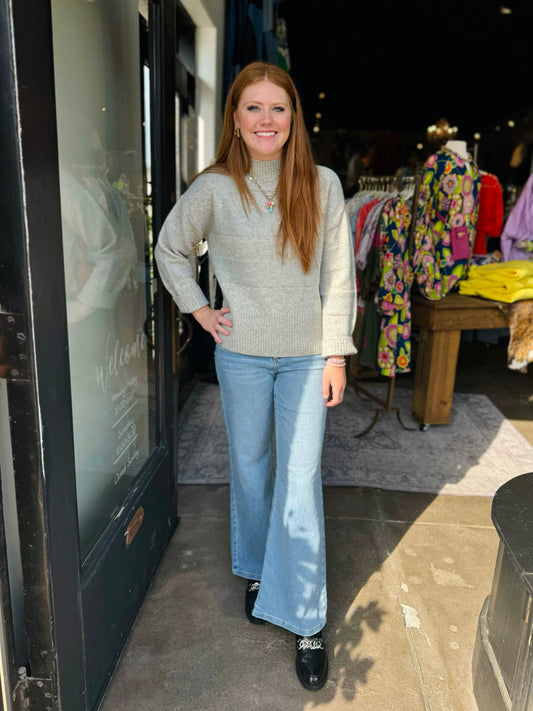 Tribal Eggshell Funnel Neck Sweater W/ Special Wash