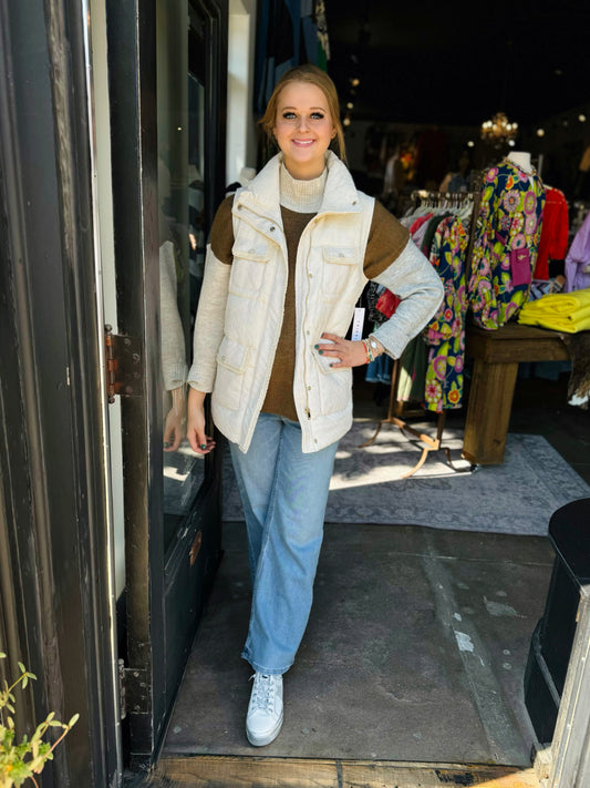 Tribal Moonstone Quilted mock neck vest