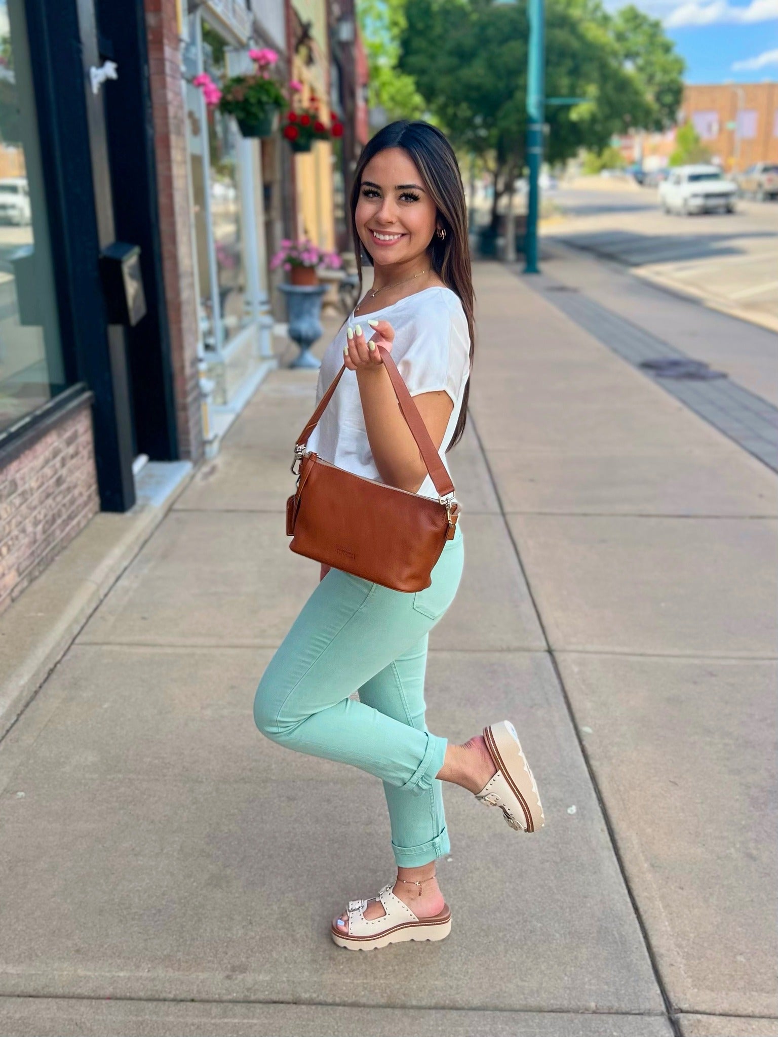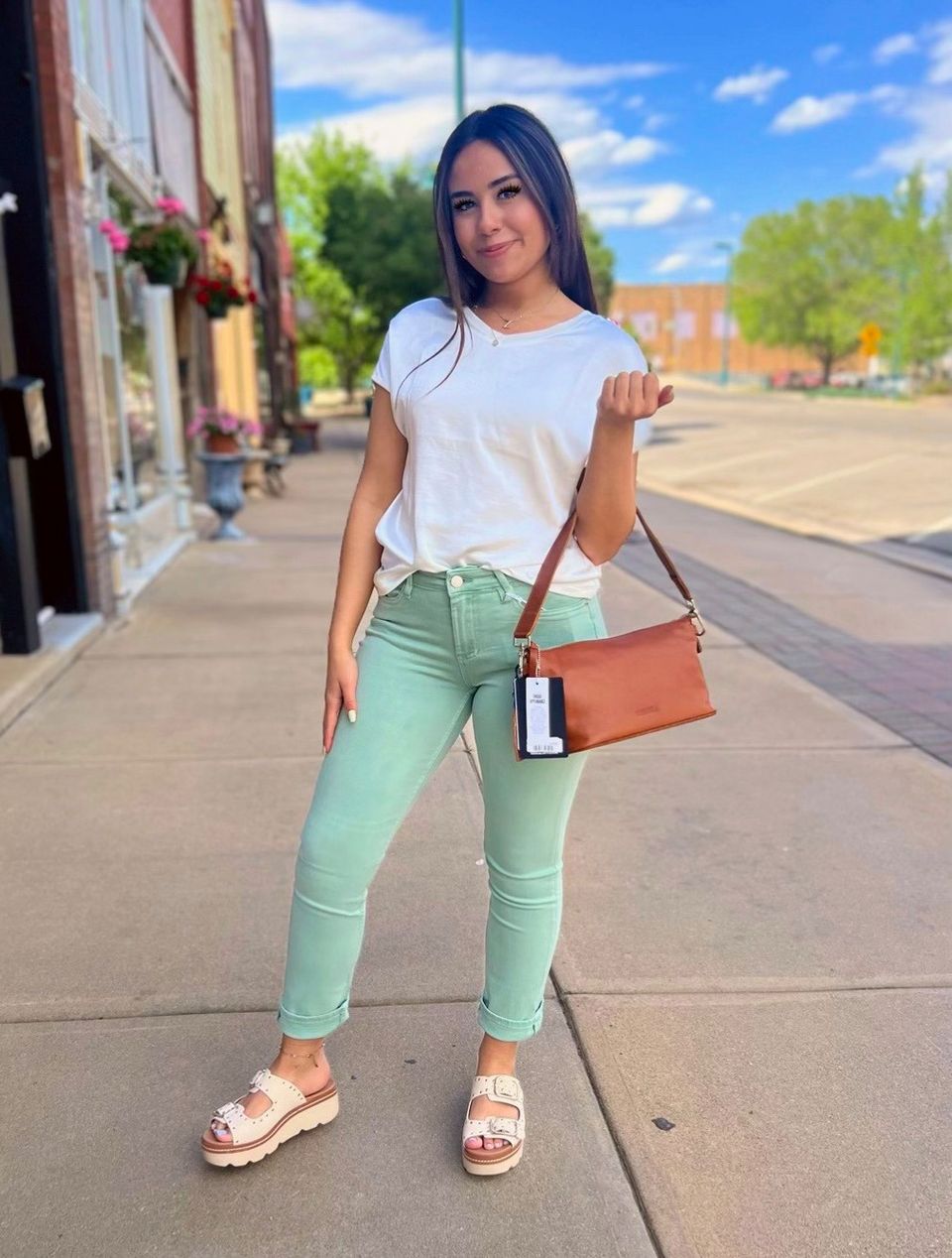 Stock up on this beautiful T-shirt for women and let your style shine through. A flattering V neckline, short Dolman sleeves and relaxed fit on this satin knit top for women lets you move freely this season. Dress it up with a fancy skirt or pants, or dress it down with cropped jeans or shorts.