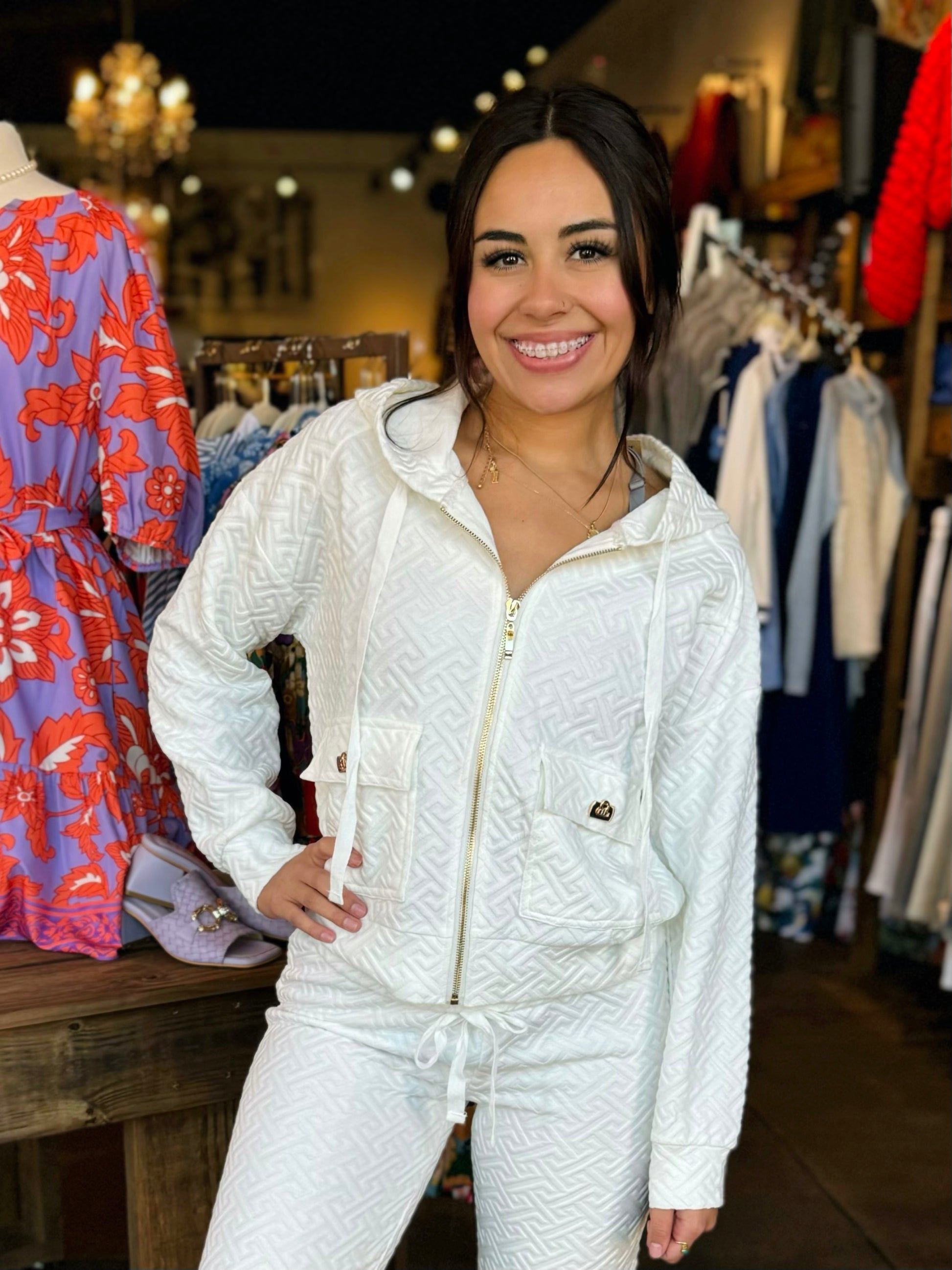 Made for comfort and convenience, the Phoenix Quilted Zip Hoodie is a must-have for your wardrobe. With a front zip, hood, and pockets, it's the perfect layer for any outing. Pair with the matching bottoms!