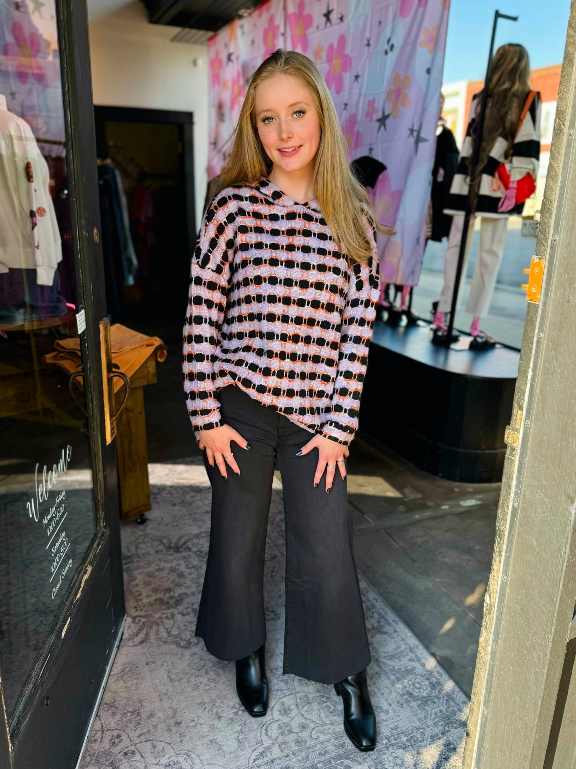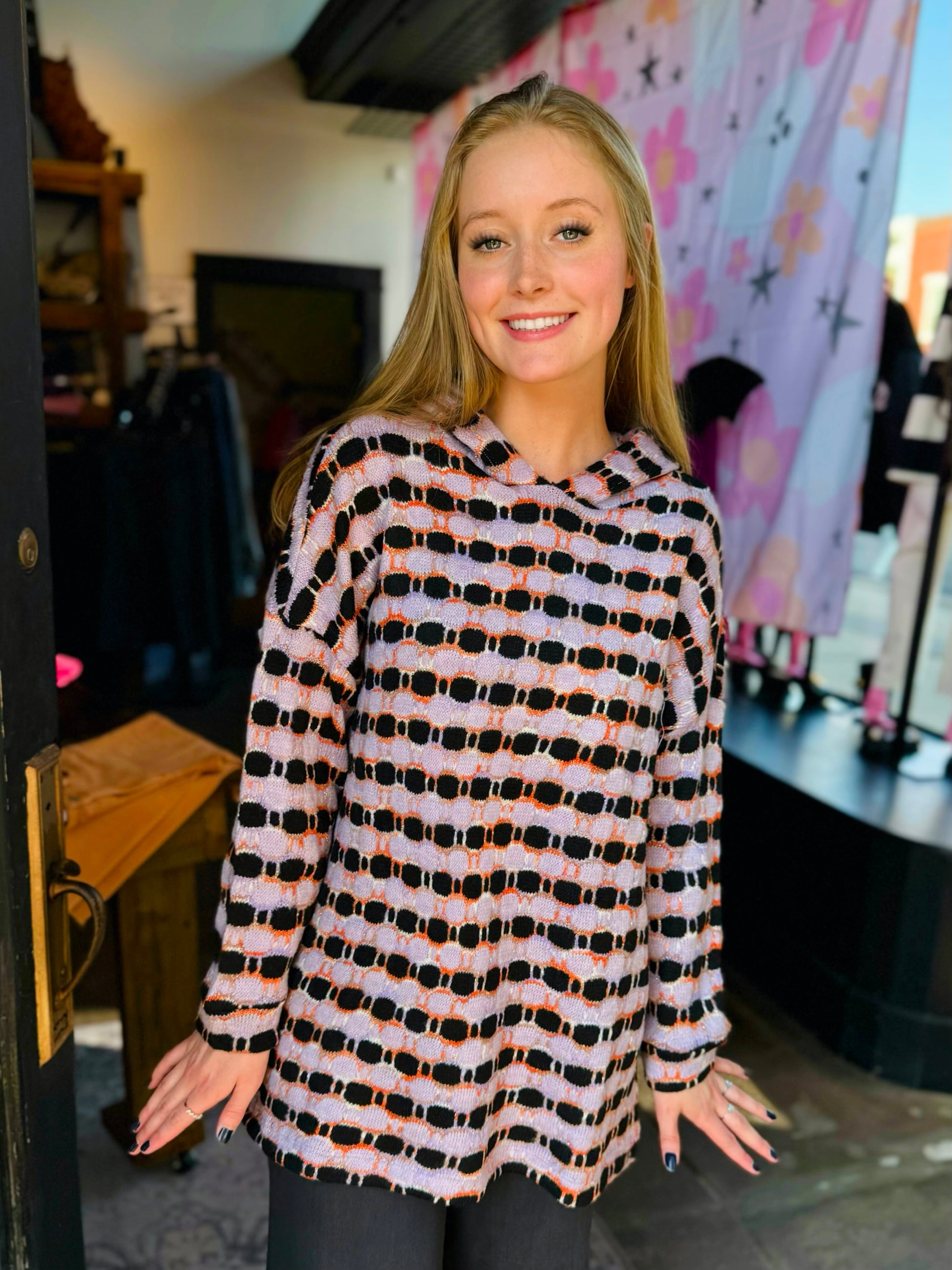 This gorgeous piece offers a flattering shape, a hooded accent, and an adorable dotted pattern with a threaded texture!