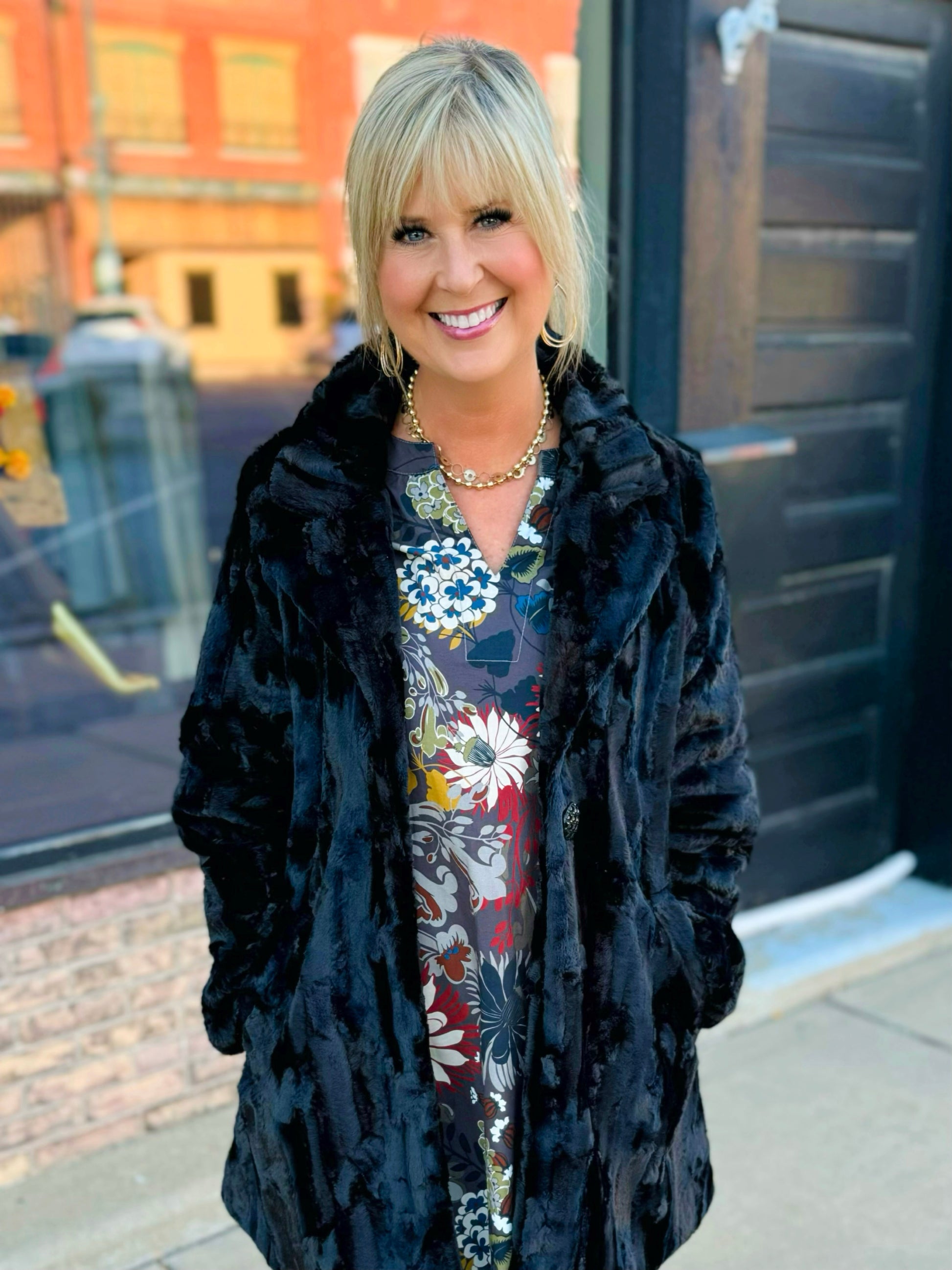 This stunning faux fur coat will have you feeling wrapped in luxury. It features a single button closure and 2 pockets for a sleek design to elevate your look this fall and winter.