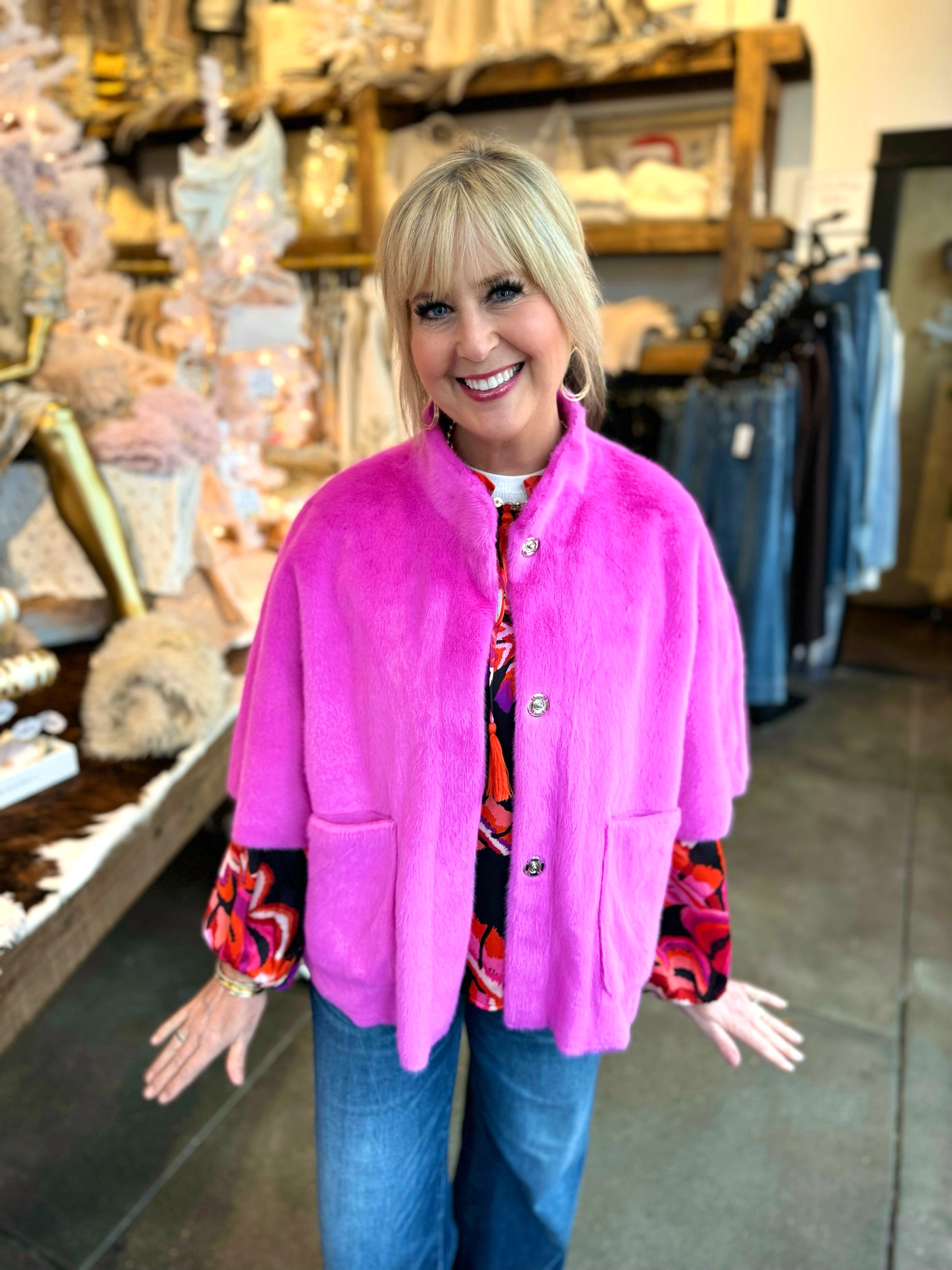 Ivy Jane Fuchsia Faux Capelet Jacket