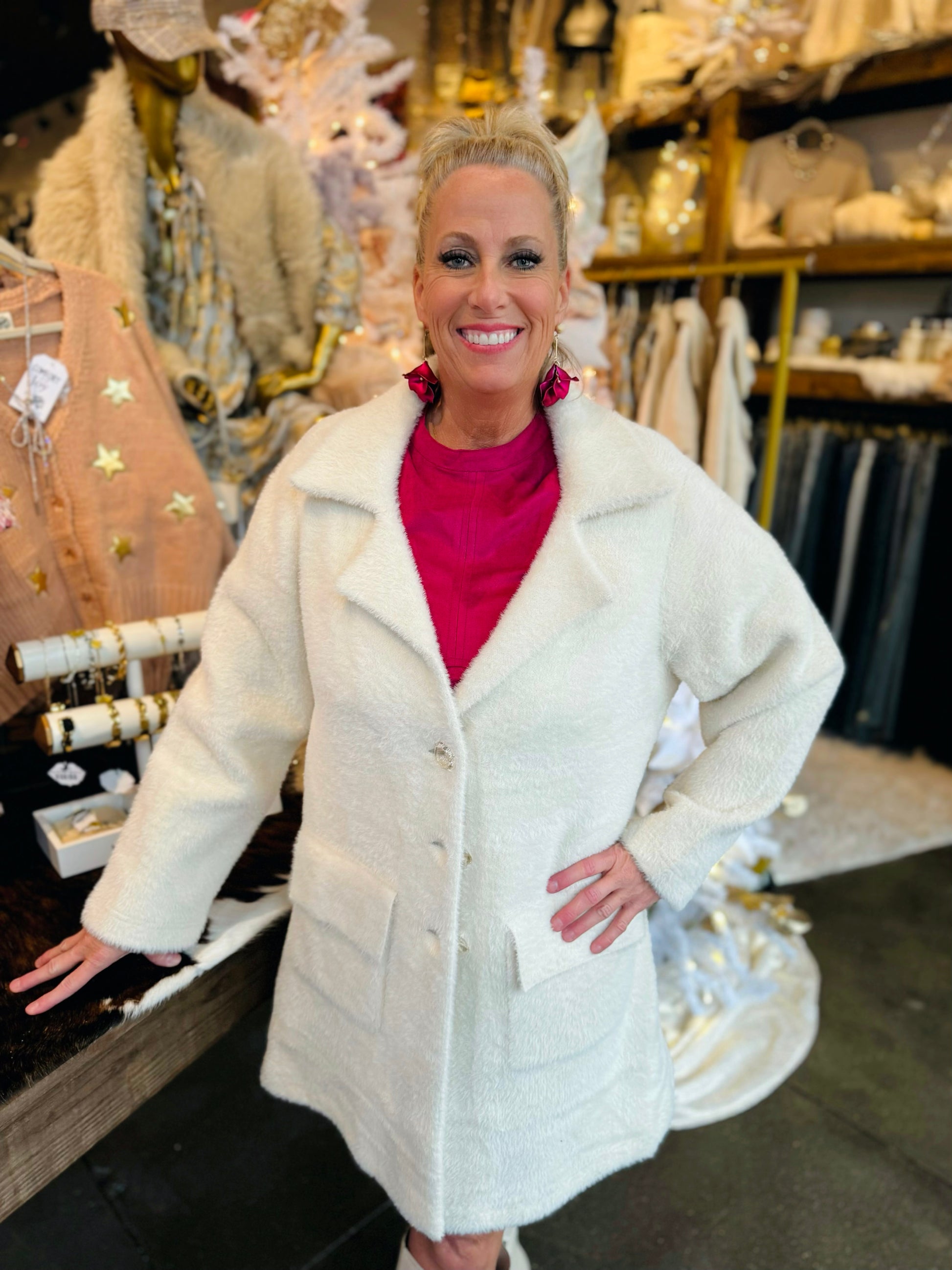 A fabulous classic coat for the chillier days ahead! This coat features a button closure, two flap pockets, a large collar and a soft material for maximum stylish comfort!