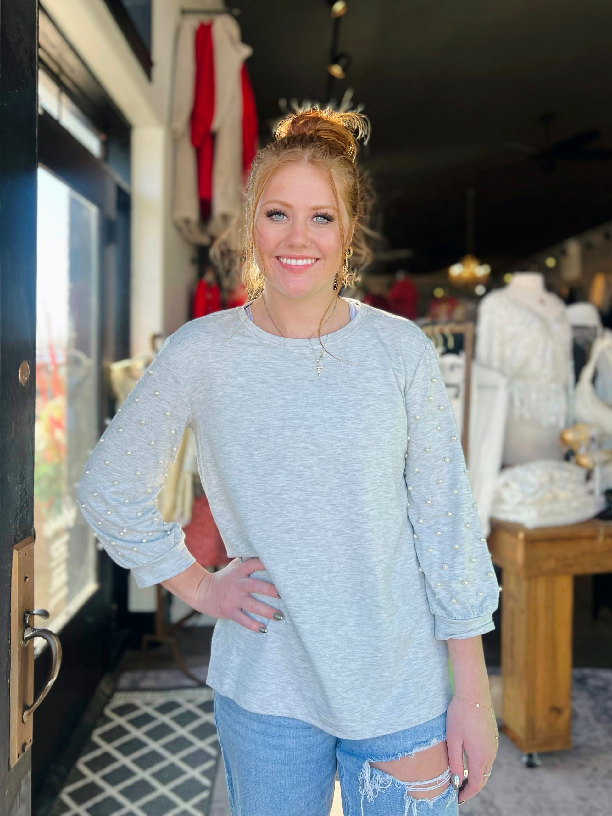 This long sleeve crew fits both a cute and casual vibe making it a versatile piece! It features a stylish puff sleeve and cute details down both sleeves!