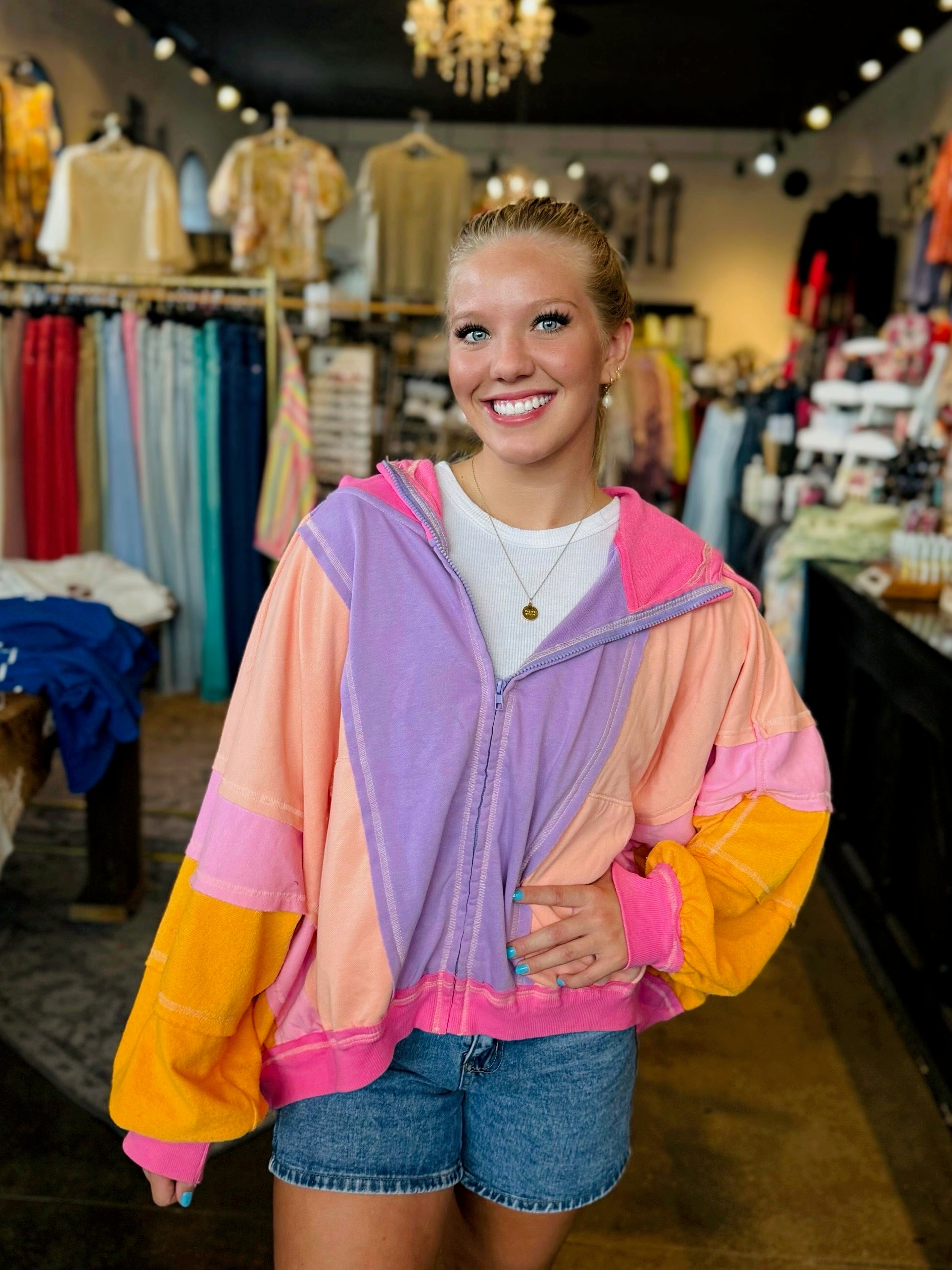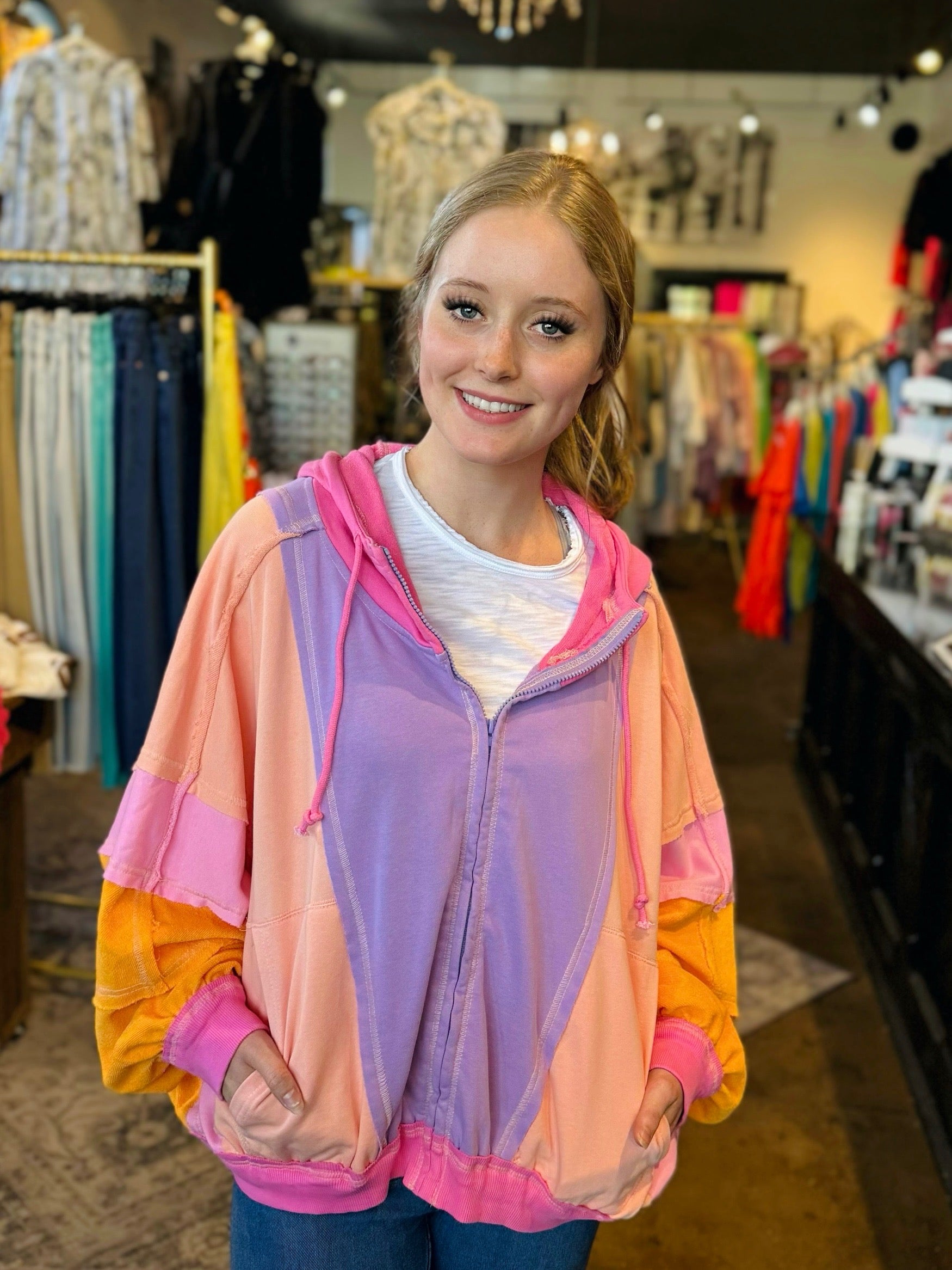 Perfectly Paige Peach/Purple Color Block Zip Hoodie