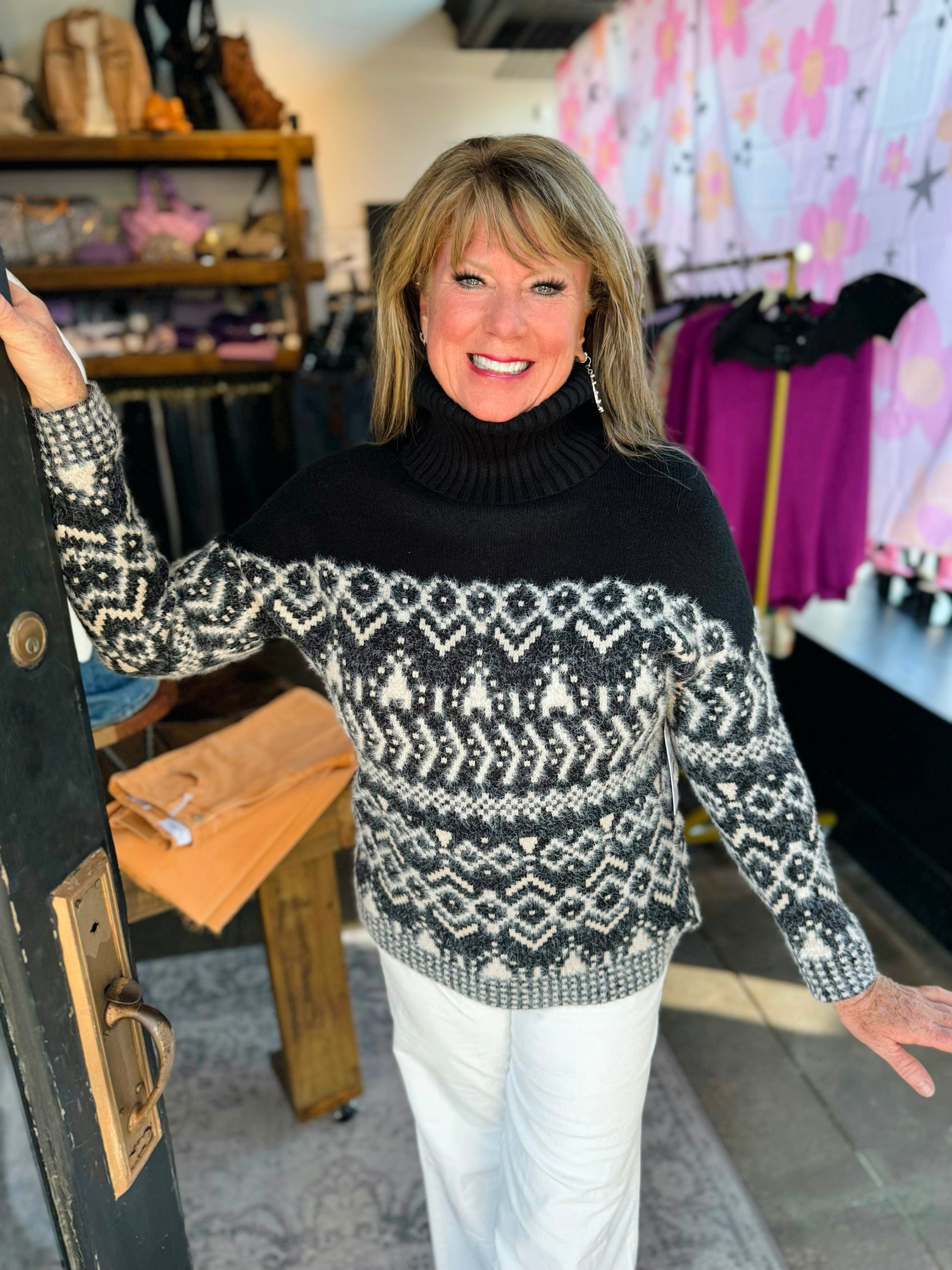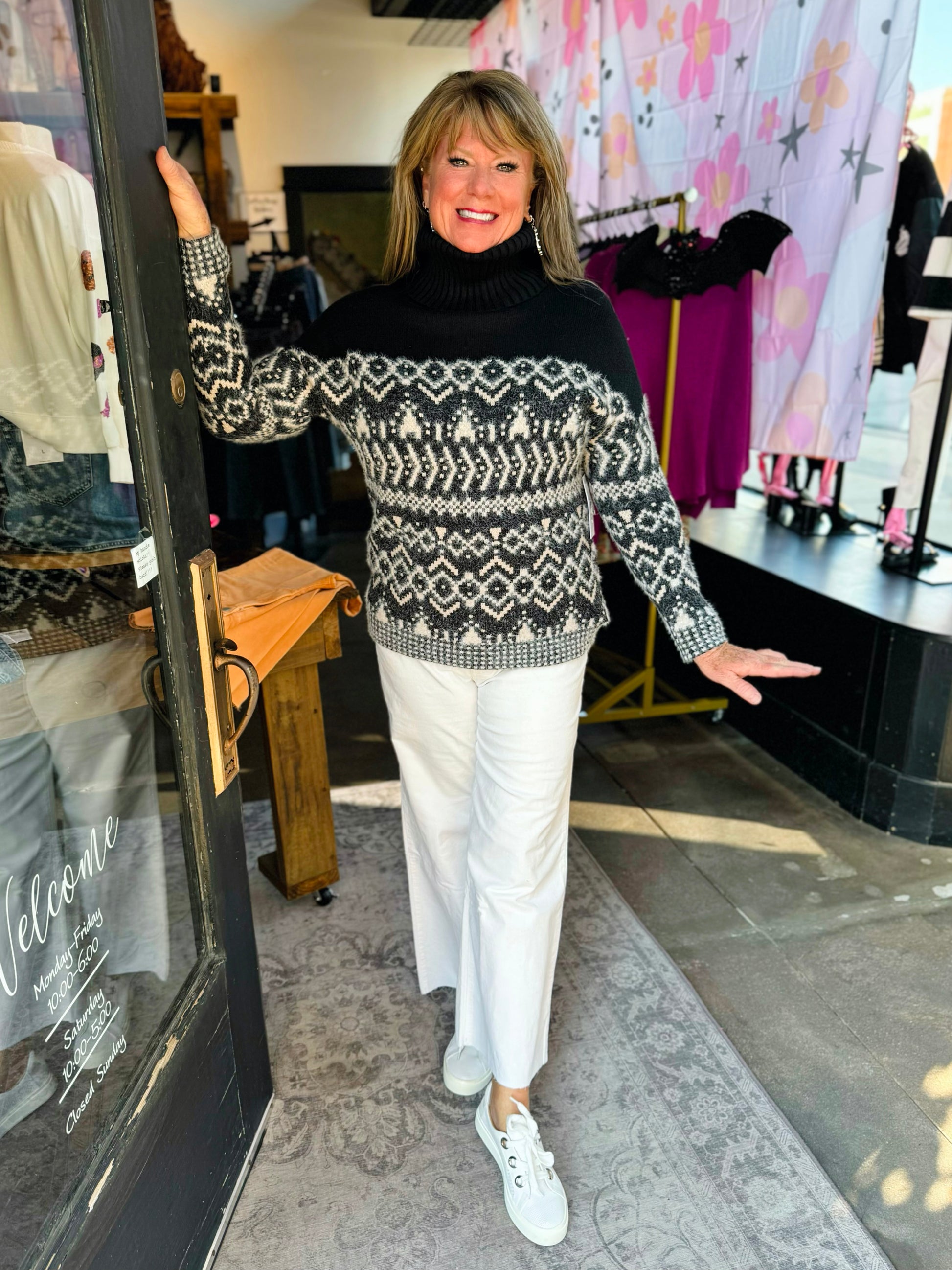 Festive at it’s finest! This sweater features a timeless turtleneck outline, drop shoulder long sleeves, and a relaxed fit with soft material for optimal comfort!