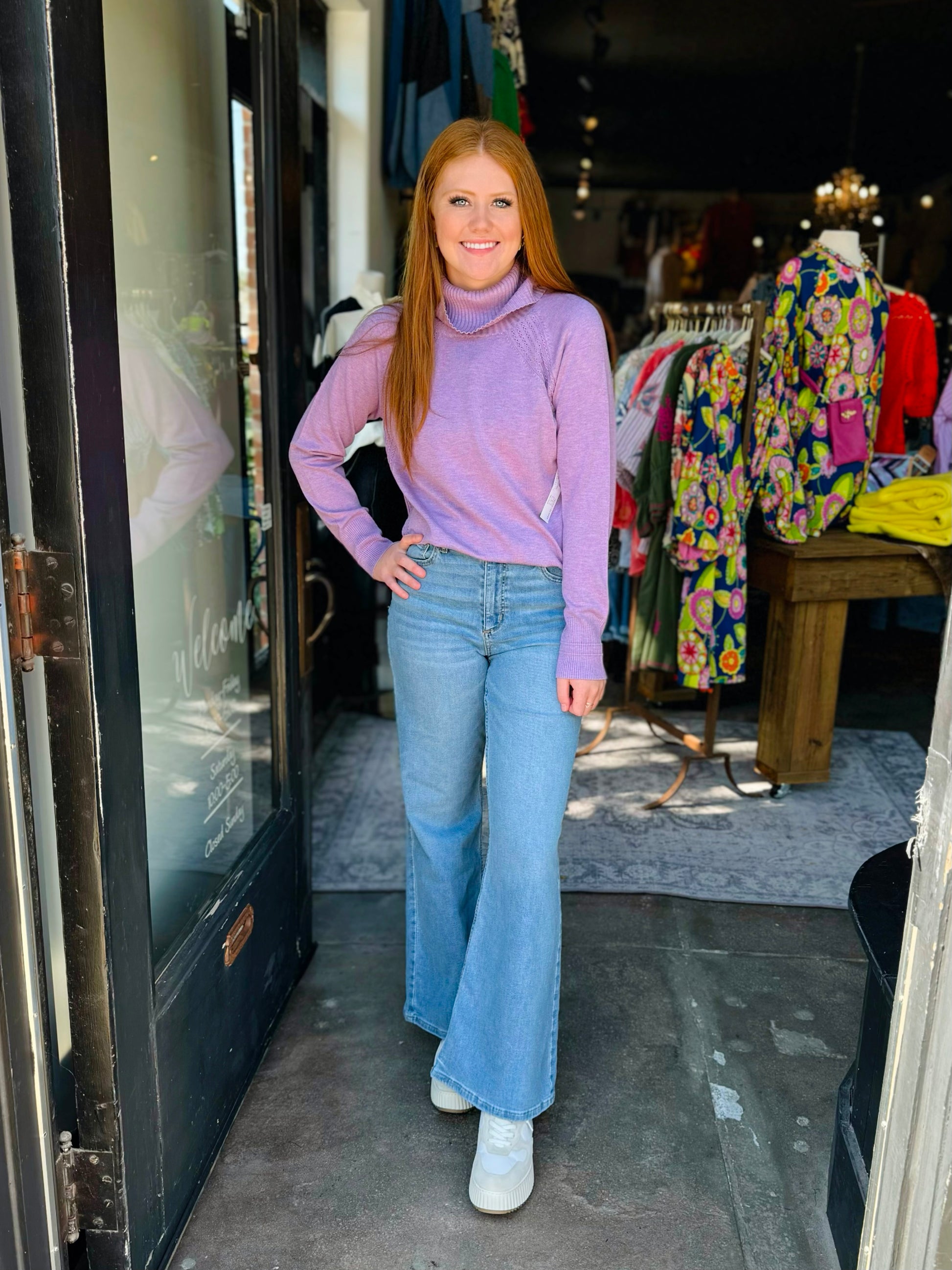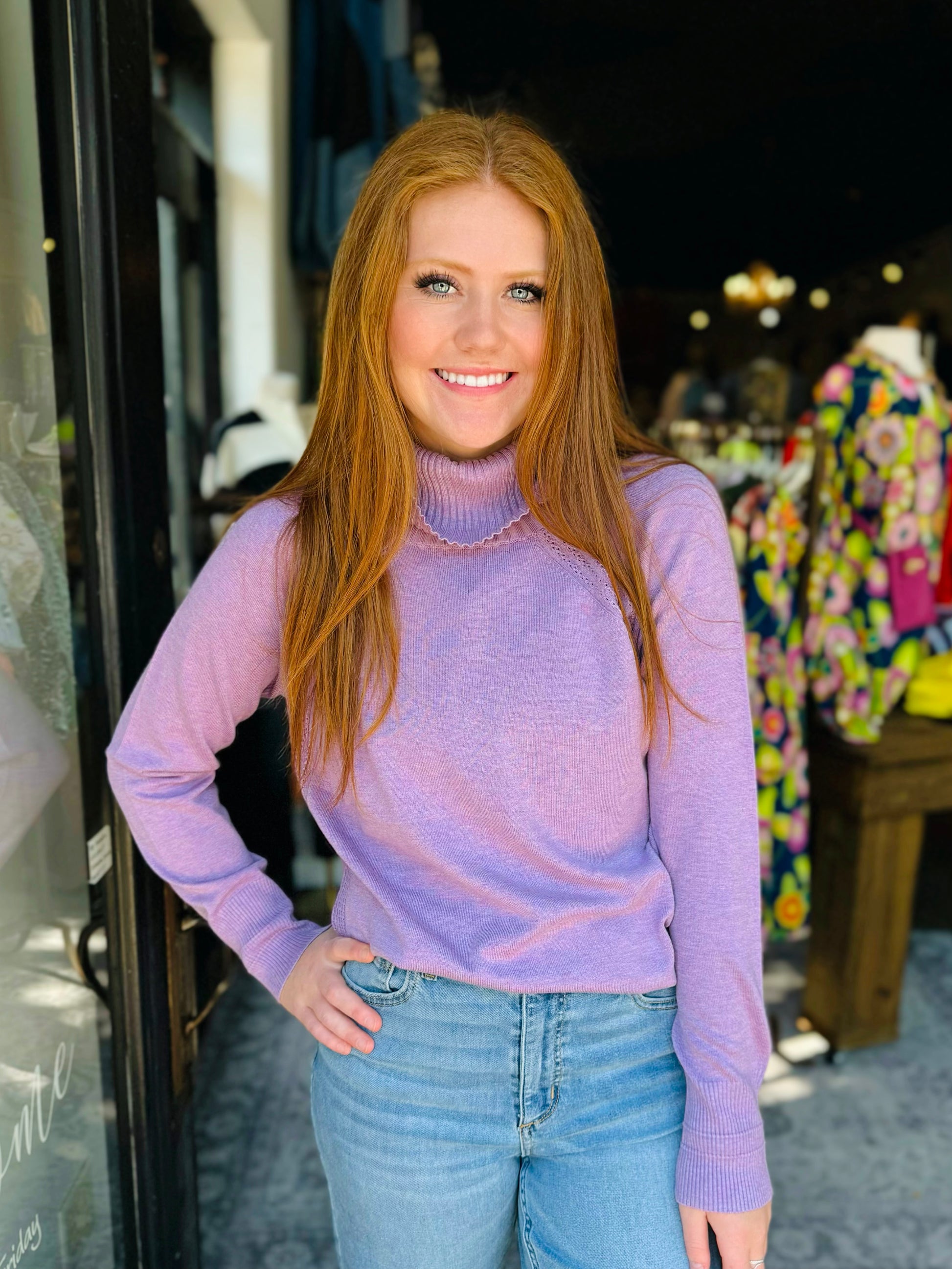 LOVE lavender in this adorable sweater with the cutest cowl neck detail. The perfect pop of color this fall.