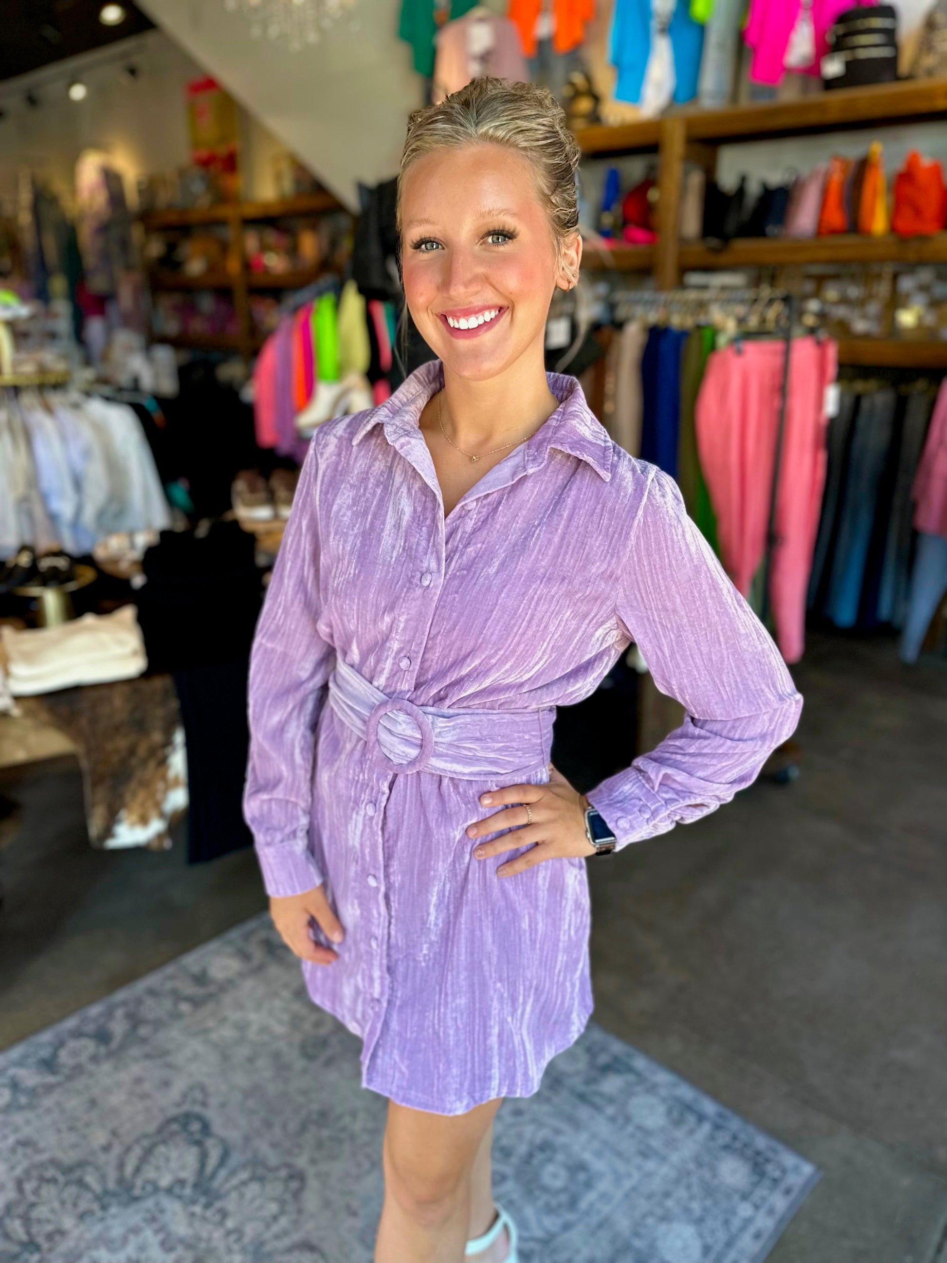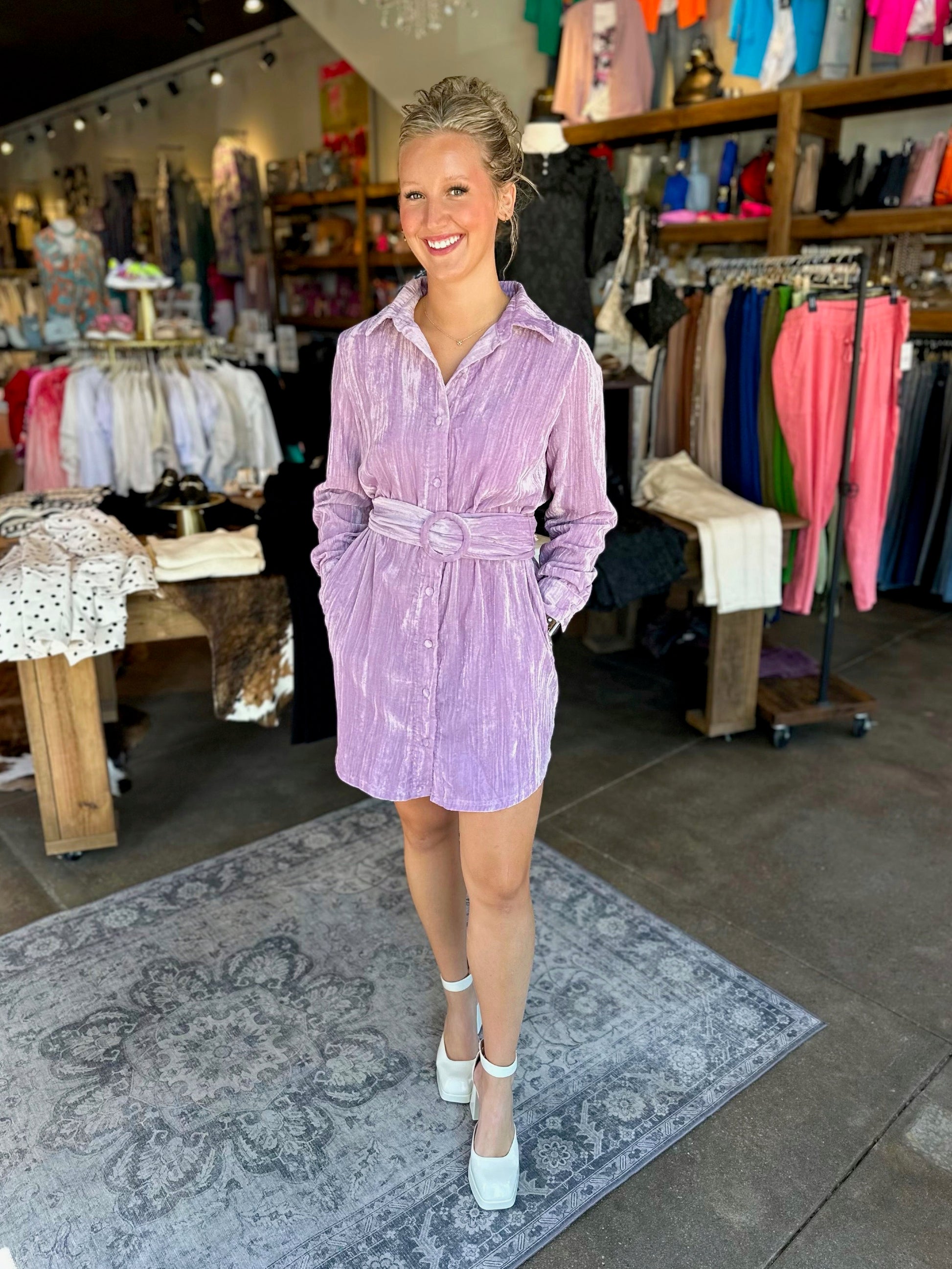 Vivian Lavender Crinkle Velvet Shirt Dress